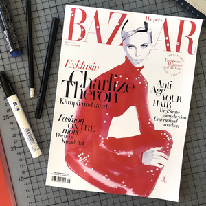 Wer braucht Photoshoots? Charlize Theron ziert die Harper’s Bazaar als Illustration