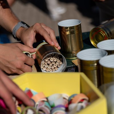 #beebetter Nisthilfen-Bastelstation beim Bienentag 2023 auf der BUGA Mannheim © René Reiche für Hubert Burda Media