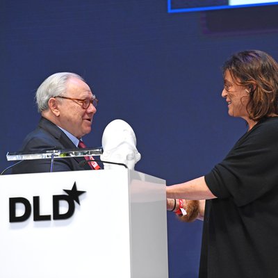 DLD-Gründerin Steffi Czerny überreichte Maja Hoffmann die Trophäe, eine Büste der Göttin Athene, der griechischen Göttin der Weisheit und eine Symbolfigur für starke Frauen. „Maja gibt das Tempo vor! Du gibst uns so viel Energie wie Aenne Burda in den 50er Jahren. Während Aenne damals die Mode revolutionierte, revolutionierst Du heute die Kunst“, so Steffi Czerny zu der Preisträgerin.
