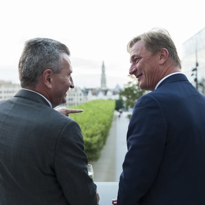 Bei der SummerNight versammelten sich rund 500 Gäste aus Politik, Wirtschaft, Medien und Gesellschaft auf den Terrassen des Restaurants „Kwint“. CEO Paul-Bernhard Kallen und Rechtsvorstand Andreas Rittstieg begrüßten dort u.a. den EU-Kommissar Günther Oettinger, die Bayerische Staatsministerin Beate Merk sowie zahlreiche Europaabgeordnete wie Herbert Reul, Petra Kammerevert, Viviane Reding, Andreas Schwab und Axel Voss begrüßen. Auch namhafte Vertreter der belgischen Kunst-und Kulturszene wie Didier Vervaeren, Professor an Belgiens führender Kunst-und Designhochschule La Cambre, waren gekommen und genossen zusammen mit den Gästen aus den europäischen Institutionen den Blick auf die eindrucksvolle Kulisse der Grand Place.