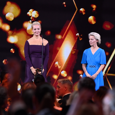 Nawalnys Frau Julija Nawalnaja und sein Sohn Zakhar nahmen den BAMBI in München stellvertretend entgegen.
