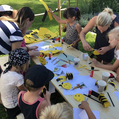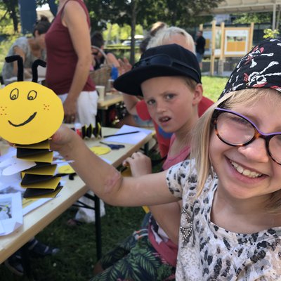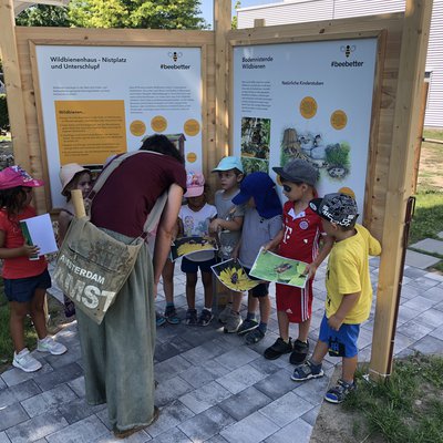 Nach der Führung durch den Garten konnten die Kids bei einem kleinen Quiz testen, was sie über die Wildbienen gelernt haben. Zu gewinnen gab’s passend zum Wetter Eintrittsgutscheine fürs Freibad. Anschließend wurden Papierbienen und Nisthilfen für Wildbienen gebastelt, die die Kinder mit nach Hause nehmen konnten. Als Geschenk gab’s obendrein für die kleinen Bienenretter u.a. Plüschbienen, Wildblumensamentütchen und ein Mein kleiner schöner Garten-Magazin. Für das #beebetter-Team ging es ohne Verschnaufpause gleich in die nächste Führung und Bastelrunde mit einer Gruppe aus der Kita Waltersweier. Und am Donnerstagvormittag standen weitere Führungen für eine Kita-Gruppe aus dem Stadtteil- und Familienzentrum Offenburg sowie der 5. und 6. Klasse aus dem Grimmelshausen-Gymnasium Offenburg an.