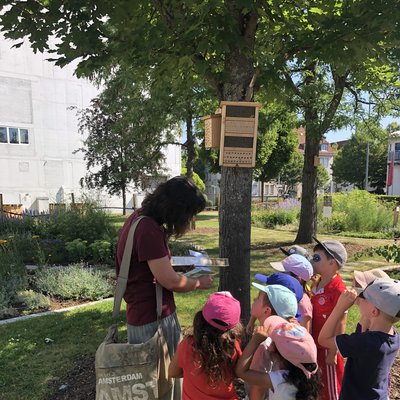 Den Anfang machte die 2a der Grimmelshausener Grundschule aus Renchen. Sie hatten auf der Robby Rheinschnake-Kinderseite des Offenburger Tageblatts eine Führung durch den #beebetter-Garten und einen Bienenkoffer mit Lernmaterialien gewonnen. Der Bienenkoffer ist ein Projekt von "Deutschland summt" und wurde im Rahmen der #beebetter Kooperation von Breitsamer Honig und Valensina gesponsert. Frühmorgens um 9 Uhr ging es an dem heißen Hochsommertag also in den #beebetter-Garten mit Bienenexpertin Antje Sommerkamp von Mein schöner Garten. Die #beebetter-Expertin hatte die volle Aufmerksamkeit der Kids und auch die Wildbienen waren trotz Hitze emsig am Werk. „Die hohen Temperaturen machen den erwachsenen Bienen nichts aus“, sagt Antje Sommerkamp. „Wenn eine Wasserstelle in der Nähe ist, wie hier in unserem Bienenerlebnisgarten, dann sind sie bestens versorgt, auch an heißen Sommertagen.“