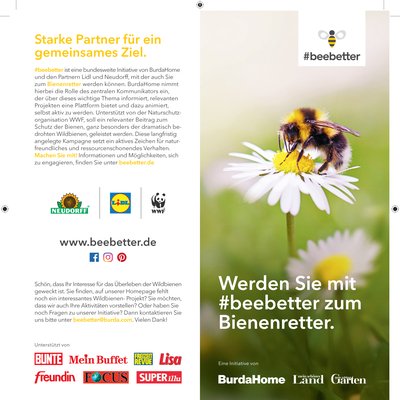 „Wir freuen uns, dass wir für den #beebetter-Award eine sehr fachkundige Jury gewinnen konnten. Wichtig war es uns dabei, ausgewiesene Experten aus den Bereichen (Wild-)Bienenkunde, Landwirtschaft, Wissenschaft und Garten- und Landschaftsgestaltung im Boot zu haben. Dazu gehört z.B. Cornelis Hemmer. Er ist Gründer und Vorstand der Stiftung für Mensch und Umwelt, die u.a. Träger der Initiative „Deutschland summt!“ ist. Mit in der Jury sitzt Klaus Wallner, Imker und Agraringenieur in der Landesanstalt für Bienenkunde. Er ist u.a. für den Bereich Pflanzenschutz – Bienenschutz verantwortlich und für die Qualitätskontrolle von Bienenprodukten. Weitere Jurymitglieder sind Nina Möllers vom bayerischen Naturkundemuseum Biotopia und Otto Boecking, Wissenschaftler am Laves Institut für Bienenkunde. Mit Phillip Krainbring haben wir außerdem auch einen Vertreter der Landwirtschaft in der Jury. Er ist Leiter eines Ackerbaubetriebs in der Magdeburger Börde und will über seinen Agrarblog mehr Transparenz in der Landwirtschaft schaffen. Komplettiert wird die Fachjury von Vertretern unserer Partner Neudorff und Lidl sowie Jörg-Andreas Krüger, Geschäftsleiter Naturschutz beim WWF Deutschland und unseren Chefredakteuren Robert Schneider (Focus), Andrea Kögel (Mein schöner Garten) und Marie-Luise Schebesta (Mein schönes Land).“