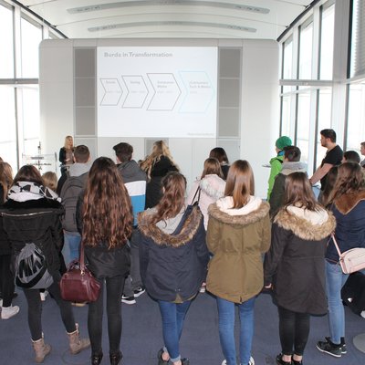 Bei Führungen durch die Druckerei und verschiedene Abteilungen, wie HR, Marktforschung, Einkauf oder Redaktion ging es für die Schüler in die Praxis. Und in der „Meet & Connect-Lounge“ konnten sie sich bei Snacks und Getränken mit den Burda-Azubis und anderen Mitarbeitern vernetzen.