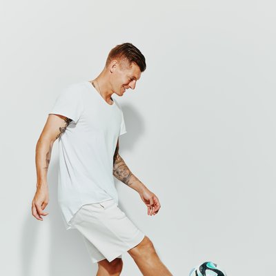 Seine Karriere beginnt der 1990 geborene Toni Kroos in den Jugendmannschaften des Greifswalder SC und von Hansa Rostock. Mit 16 Jahren kommt er zum FC Bayern München, der ihn für eineinhalb Jahre an Bayer 04 Leverkusen ausleiht. Ab der Saison 2010/11 spielt er für den FC Bayern und wird mit dem Verein dreimal deutscher Meister und dreimal deutscher Pokalmeister. 2013 holt er mit den Bayern das Triple aus Meisterschaft, Pokalsieg und Champions-League-Sieg. 2014 wechselt Kroos zu Real Madrid und wird viermal spanischer Meister und sechsmal Champions League-Sieger. Mit der deutschen Nationalmannschaft nimmt Kroos an drei Weltmeisterschaften und vier Europameisterschaften teil. 2014 siegt er mit der deutschen Elf bei der WM in Brasilien.