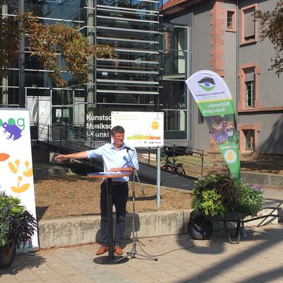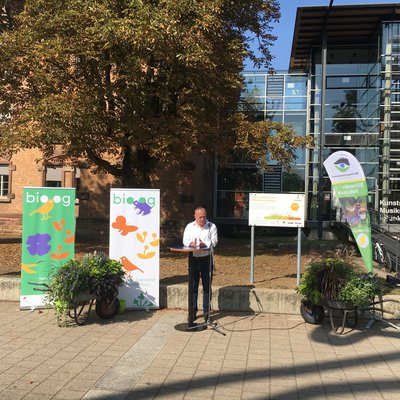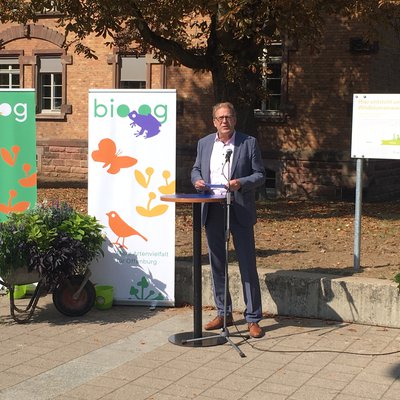 Baubürgermeister Oliver Martini nutzte die gemeinsame Aktion mit #beebetter um die neue städtische Kampagne Bio.og für mehr Biodiversität vorzustellen. Dabei geht es u.a. um ein Förderprogramm, mit dem die Bürgerinnen und Bürger animiert werden sollen, noch mehr „blühendes“ und „artenreiches“ Grün in der Stadt zu schaffen und auch private Flächen, wie Innenhöfe und Schotterflächen zu entsiegeln, oder Dächer und Fassaden zu begrünen.
