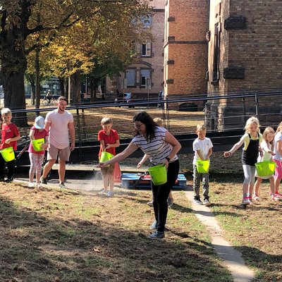 Das regionale Blühwiesen-Saatgut für die 1000 Quadratmeter große Fläche am Offenburger Kulturforum kommt vom Naturpark Schwarzwald Mitte/Nord. Auch Geschäftsführer Karl-Heinz Dunker freute sich, dass bei der symbolischen ersten Aussaat die Kinder eine Hauptrolle übernommen haben und der Nachwuchs so sensibilisiert wird für das Thema Artenschutz. Wichtig sei es, dass man kein einjähriges Strohfeuer ansäe, sondern nachhaltig vorgehe. „Alles was wir tun, was wir hier ansäen, ist mehrjährig. Also liebe Kinder, wenn ihr in vier, fünf Jahren hier vorbeilauft, sollte es noch blühen.“ Dunker erklärte den Kindern auch den Unterschied zwischen Honigbienen und Wildbienen, und warum gerade letztere so gefährdet sind und unseren ganz besonderen Schutz benötigen. Naturpark-Mitarbeiterin Lilli Wahli schritt anschließend mit den Kids zur Tat. Das Saatgut für 33 verschiedene Wildblumenarten wurde mit etwas Sand vermischt und gemeinsam auf dem bereits vorab aufgelockerten Boden ausgesät.