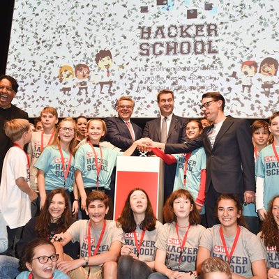 Dem Herzensthema des Tages, die digitale Bildung der jungen Generation, wurde anhand der Veranstaltung von Deutschlands größter Hacker School mit rund 200 Münchner Schülerinnen und Schülern ein ganz besonderer Stellenwert eingeräumt.