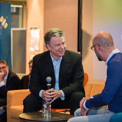 Ein Highlight des Programms war der 40-minütige Bühnentalk von Burda-CEO Paul-Bernhard Kallen und Dominik Wichmann (Looping Group). Ihr Austausch drehte sich um die Entwicklungen von „Corporate Investors“, die Veränderungen in der deutschen Startup-Szene und wie große Unternehmen jungen Gründern nicht nur finanziell helfen können. Denn nicht allein die Investition ist maßgeblich, sondern ganz besonders die Unternehmenskultur. Kallen betonte: „Wir bieten viel Freiraum und ermutigen Gründer, neue Ideen voranzutreiben – so haben wir bei Burda ein Ökosystem für Entrepreneure geschaffen.“