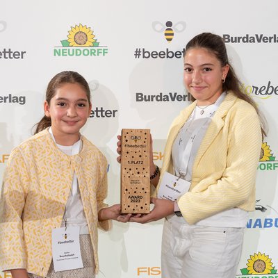 In der Kategorie „Private Initiativen“ konnten sich die beiden Schwestern Zohra und Louisa Boucheloukh aus Hannover über den #beebetter-Award freuen. Die beiden 10 und 14 Jahre alten Mädchen hatten die Fachjury mit ihrem Projekt „#wirmachenhannoverbunt“ begeistert. Die Schwestern haben privat ein Bienenschutzprojekt auf die Beine gestellt und u.a. über 500 Tütchen mit wildbienenfreundlichen Blumensamen in der Stadt verteilt. Bald darauf verkauften sie bemalte Bienenbeutel und konnten so einen Bienenfutterautomaten kaufen, der zurzeit durch alle Stadtteilbibliotheken in Hannover wandert. Mit Pflanzaktionen, Infoständen, Vorträgen, Filmvorführungen, Bienen-Bastel-Nachmittagen für Kinder und vielem mehr haben die Schwestern innerhalb weniger Jahre unzählige große wie kleine Bienenhelfer erreicht, bewegt und begeistert.