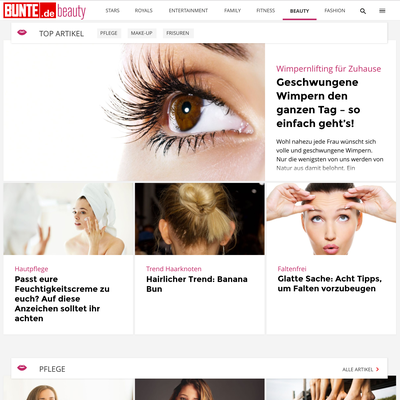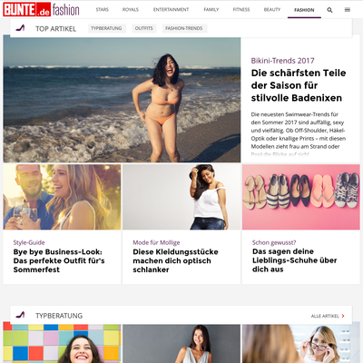 Das Online-Portal Bunte.de baut mit zusätzlichen Service- und Ratgeberthemen sein Angebot deutlich aus. Mit den vier neuen Channels „Feel fit“, „Family“, „Fashion“ und „Beauty“ wird die People- und Entertainmentmarke so zur umfassenden Content-Destination für Frauen in Deutschland. Ein eigenes Team aus insgesamt sieben Mitarbeitern wurde dafür geschaffen.