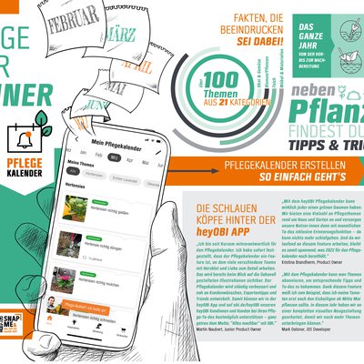 Unter dem Motto „Zeig deinem Garten, was du kannst“ will Obi seinen Kund:innen mit dem „Alles Machbar“-Magazin Lust auf die neue Gartensaison machen. Dabei verfolgt das Heft gleich mehrere Ziele. Zum einen gibt es den Leser:innen viele Ideen, Inspirationen und Trends für Garten & Balkon. Darüber hinaus zeigt es durch ansprechende Anleitungen, wie man die Projekte umsetzt und alles machbar mit Obi ist. Motiviert werden die Kunden z.B. durch digitale und stationäre Beratungsangebote, How-to-Videos und Produkttipps. Eine Verlängerung aus dem Printmagazin in das Obi Online-Ökosystem erfolgt durch den Einsatz von QR-Codes.