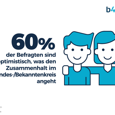 Über die Hälfte der Befragten ist sehr oder eher optimistisch, was den Zusammenhalt im Freundeskreis (60%) und in der Gesellschaft allgemein (47%) angeht. Auch ihre gesundheitliche Perspektive (41%) sowie die Situation der öffentlichen Sicherheit (34%) schätzt ein Großteil der Befragten als positiv ein.