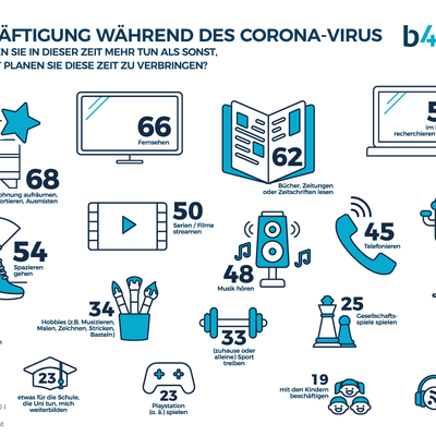 Das große Informationsbedürfnis der Bevölkerung führt außerdem dazu, dass nicht nur mehr, sondern auch andere Medien als sonst genutzt werden. 61% der Befragten ziehen häufiger Informationen aus unterschiedlichen Quellen, als sie es normalerweise tun. Zusätzlich haben sich bei 57% der Befragten auch die Tageszeiten verschoben, zu denen sie Nachrichten konsumieren. Dies geschieht nun zwar in kürzeren Intervallen, aber dafür über den Tag verteilt. Übrigens gehört Lesen neben Aufräumen und Fernsehen zu den Top 3 Aktivitäten in Zeiten von #WirBleibenZuhause.