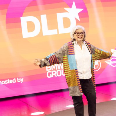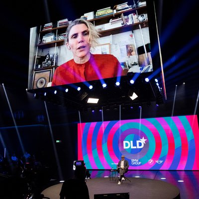 Die DLD-Bühne war passend zum Motto „Circular Economy“ rund gestaltet und wurde mit großen LED-Screens und Scheinwerfern in Szene gesetzt.