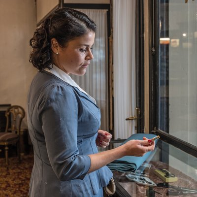 Schauspielerin Katharina Wackernagel steht als Aenne Burda im Mittelpunkt des Zweiteilers über die Offenburger Verlegerin, die mit Burda Moden ein Zeitschriftenimperium aufbaute und das Selbstschneidern nach Schnittmusterbögen populär gemacht hat. Sie hatte die richtige Idee zur richtigen Zeit – eine Startup-Gründerin par excellence der 50er Jahre!