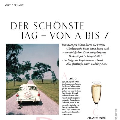 Wer könnte bessere Tipps zur Hochzeit geben als ehemalige Bräute? Das hat sich auch die Elle-Redaktion gedacht und innerhalb des Teams die besten Ratschläge gesammelt. Die Redakteurinnen verraten im Heft ihre persönlichen Do’s und Don’ts. Hier ein Auszug: