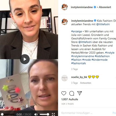 „Mit der ersten virtuellen Instyle Mini&Me Lounge konnten wir nicht nur unsere bestehende Community begeistern, sondern auch einen beachtlichen Follower-Zuwachs generieren. Besonders spannend fanden die modebegeisterten Instyle Mini&Me-Fans den Talk mit dem Concept Store @littlefoshi über die aktuellen Trends in der Kids Fashion.“