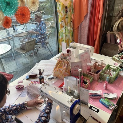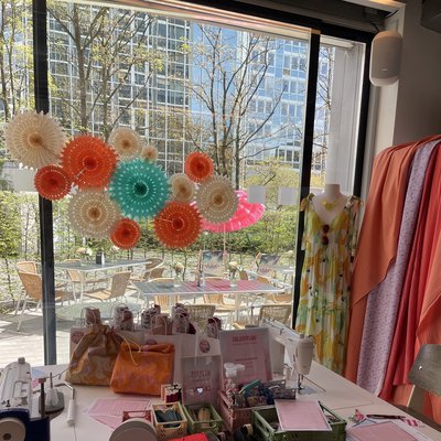 Die Burda Style Trendshow war in vier Trendwelten aufgeteilt, in denen die Teilnehmer:innen passend zum jeweiligen Motto selbst aktiv werden konnten. In der Trendwelt Granatapfel wurden sie mit Cocktails begrüßt, konnten an einer Selfie-Box posieren und sich bei der Stylingberatung von der Burda Style-Modechefin Sabine Maeulen inspirieren lassen. In der Trendwelt Exotic Dream konnten die Gäste ihre Kreativität ausleben und an bereitstehenden Nähmaschinen und mit bereits zugeschnittenen Materialien eine Bikini-Tasche für den nächsten Strandurlaub selbst nähen. Bei einem Handlettering-Workshop entstanden außerdem Lesezeichen in tropischen Motiven.