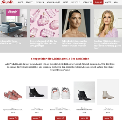 Das E-Commerce-Konzept wurde auch auf die Marken Elle und Freundin übertragen, die nun ebenfalls einen eigenen Marktplatz haben. Unter der jeweiligen Rubrik Shop-It finden Mode- und Beauty-Interessierte ausgewählte Produkte, vom angesagten Kleid bis zur Anti-Aging-Creme. Das Besondere daran ist: Alle Produkte, die es dort zu kaufen gibt, sind von den Mode- und Beautyexpertinnen der jeweiligen Redaktion kuratiert worden, d.h. es gibt dort nur Dinge, die die Redakteurinnen speziell für ihre Leserinnen ausgewählt haben. Und das natürlich jeweils zugeschnitten auf die typische Elle-, Freundin- oder Instyle-Leserin.