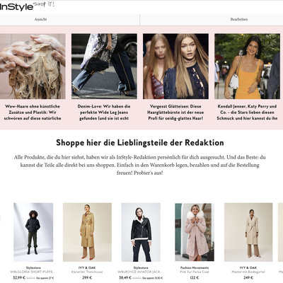 Über das Magazin, Social Media, die Instyle-Shopping-Deals-App und über den Shopping-Newsletter werden Leserinnen auf aktuelle Trends und Angebote aufmerksam gemacht. Auf Instyle.de haben sie dann die Möglichkeit, sowohl ausgewählte Teile aus dem aktuellen Heft als auch Empfehlungen der Instyle-Redaktion direkt zu kaufen. Für Modefans wird dadurch das Nachstyling ihrer Lieblingslooks noch einfacher und schneller möglich. Partner profitieren neben zusätzlichen Erlösen von der Steigerung ihrer Markenbekanntheit und einer möglichen Neukundengewinnung. Und Instyle.de baut das E-Commerce-Geschäft stetig weiter aus. Inzwischen sind mehr als 160 Partnershops an den Marktplatz angeschlossen.