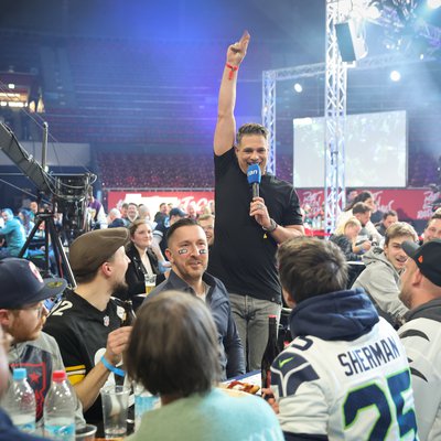 Los ging es in der Halle mit der Übertragung der Super Bowl Countdown-Show: der ran-Moderator Max Zielke gab Einblicke zur Stimmung vor Ort in Arizona und erste Vermutungen zum Spielverlauf. Dann standen die Sportmoderatoren Carsten Spengemann, Roman Motzkus, Andreas Nommensen und Volker Schenk auf der Münchner Bühne und führten die Fans im Audi Dome durch den Abend. In diesem Rahmen verloste Cyberport gemeinsam mit Hyperice unter anderem ein signiertes Trikot von NFL-Star Patrick Mahomes. Die Show der Cyberport ran Football Super Bowl Party wurde auf ProSiebenMAXX übertragen und auch während der nachfolgenden Live-Übertragung aus Arizona auf ProSieben wurde der Audi Dome immer wieder live zugeschaltet. Momente wie ein gemeinschaftliches Singen von John Denvers „Take Me Home, Country Roads“ bei der Super Bowl Party haben erneut bewiesen, welche besondere Stimmung unter den Football-Fans herrscht. Es folgten ein mitreißendes Match, eine legendäre Live-Show von Rihanna und jede Menge Emotionen in den Rängen.