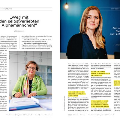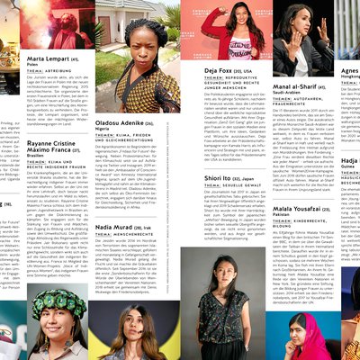 In der Beilage „Frauen von heute, die an morgen denken“ werden in ausführlichen Interviews und Porträts Visionärinnen, Gründerinnen, Wissenschaftlerinnen, Journalistinnen, Aktivistinnen, Kreative und Unternehmerinnen vorgestellt: allesamt Frauen, die handeln, etwas bewegen und uns inspirieren.