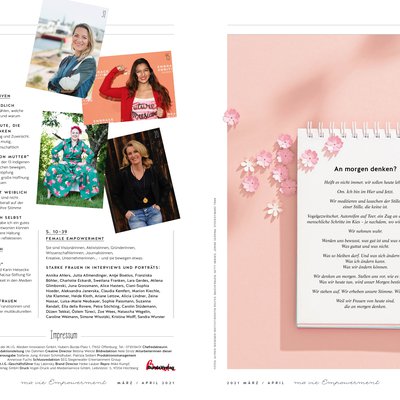 Die neue Ma Vie-Ausgabe erscheint heute mit einem Extraheft im Heft zu „Female Empowerment“. Diese Woche hat mit dem Internationalen Weltfrauentag begonnen. Seit 100 Jahren wird am 8. März weltweit für Frauenrechte und für Gleichberechtigung demonstriert. Aber auch noch im Jahr 2021 zeigt sich, dass es leider nicht reicht, einmal im Jahr daran zu erinnern, dass immer noch mehr als die Hälfte der Bevölkerung in vielerlei Hinsicht unterrepräsentiert ist, benachteiligt oder gar unterdrückt wird. Das Mindstyle-Magazin Ma Vie macht deshalb „Die Stärke der Frauen“ zum Herzthema der Ausgabe März/April mit einem 52-seitigen Extra. Im Mittelpunkt stehen u.a. Feminismus, Selbstliebe, Solidarität, Quotenregelung, XX-Ökonomie, die Rolle von Frauen während der Corona-Pandemie und Netzwerkerin Tijen Onaran spricht über Personal Branding.