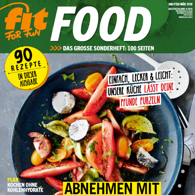 Gesund und fit ins neue Jahr: Fit for Fun bringt zum Start des Jahres 2018 das Food-Sonderheft „Low Carb & Low Fat“ an den Kiosk. Die Redaktion des Fitness- und Lifestyle-Magazins informiert darin unter anderem über die theoretischen Hintergründe beider Ernährungsformen und erläutert, welche Vorteile welches Konzept hat. Außerdem unterstützt das Magazin die Leser dabei, den für sie persönlich besten Weg zum Abnehmen zu finden. Der zweite Teil des Sonderheftes liefert 90 Rezepte zum Nachkochen. Sie sind in unterschiedlichen Kategorien wie Frühstück, kalte/warme Hauptspeise und Snacks zusammengefasst – inklusive Kennzeichnung, ob sie den Konzepten von Low Carb und/oder Low Fat folgen.