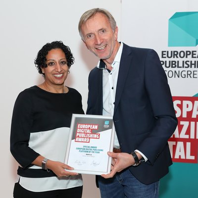 Wie vital die Branche trotz dieser großen Herausforderungen ist, zeigten die beim diesjährigen European Publishing Congress zum ersten Mal ausgezeichneten führenden Magazine und digitalen Publishing-Projekte des Kontinents. Burda ist mit insgesamt sechs ausgezeichneten Marken und Projekten hier sehr prominent vertreten. Nina Zimmermann (CPO BurdaStudios) und Jörg Rohleder (Stv. Chefredakteur Focus) nahmen die Preise in Wien stellvertretend für die ausgezeichneten Teams entgegen.