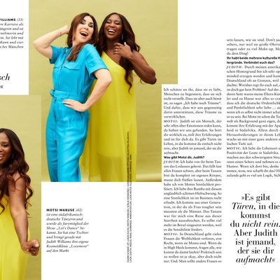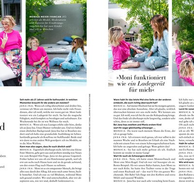 In ausführlichen Interviews im Heft sprechen die Cover-Frauen darüber, was ihre jeweiligen Freundinnen für sie bedeuten und wie sie gute Freundschaften erhalten. „Ich schätze ihre Sinnlichkeit“, sagt Judith Williams über Motsi Mabuse. Und Jana Ina Zarella verrät, dass sie immer, wenn sie zu sehr durch den Alltag hetzt, an ihre „innere Moni“ denkt und sich die Ruhe und Entspanntheit ihrer Freundin Monica Meier-Ivancan zum Vorbild nimmt.