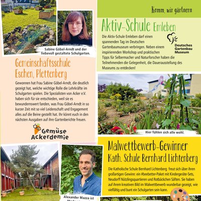 Natürlich wurden noch viele weitere Schulgartenprojekte mit tollen Preisen bedacht, dank der Partner und Unterstützer der Schulgartenaktion 2024: LaVita, BayWa Stiftung und Landgard Stiftung. Zum ersten Mal wurde ein Sonderpreis für Lehrkräfte vergeben, die einen exklusiven Zugang zur Acker Lernplattform gewinnen konnten. Die Gewinnerin des Sonderpreises, Sabine Göbel-Arndt von der Gemeinschaftsschule Eschen in Plettenberg, wird nun auch redaktionell in Mein kleiner schöner Garten durch das Schulgartenjahr begleitet.