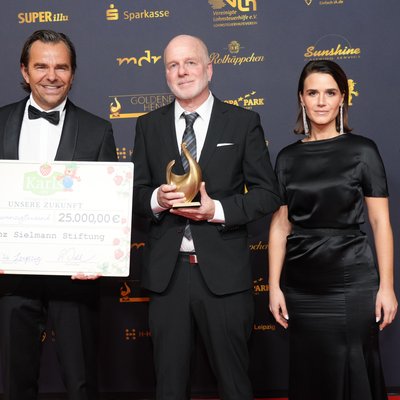 Mit dem Ehrenpreis „Unsere Zukunft“ wurde die Sielmann-Stiftung mit Peter Nitschke, Leiter der „Sielmann Naturlandschaft Döberitzer Heide“, ausgezeichnet. Nitschke formte aus einem ehemaligen Truppenübungsgelände in Brandenburg ein riesiges Naturparadies, in dem heute u.a. Wisente und Przewalski-Pferde eine gesicherte Heimat in freier Wildbahn finden. Die Laudatio hielt Moderatorin und Journalistin Yara Hoffmann. Auch Peter Nitschkes Projekt „Naturlandschaft Döberitzer Heide“ wird unterstützt mit einer 25.000 Euro-Spende von Goldene Henne-Partner „Karls“, überreicht durch Unternehmensgründer Robert Dahl.