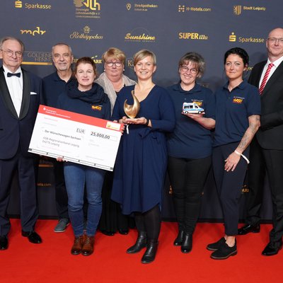 Der Ehrenpreis „Helden des Alltags“ ging an das Kriseninterventionsteam Leipzig e.V. Der Verein unterstützt Menschen, die in eine Krise geraten sind. Die psychosoziale Betreuung unmittelbar nach einem traumatischen Ereignis soll helfen, die akute Belastung der Betroffenen zu verringern und Folgeerkrankungen zu vermeiden. Laudator auf diese „Helden des Alltags“ war Torsten Bonew, 1. Bürgermeister der Stadt Leipzig. Goldene Henne-Partner „Rotkäppchen“ würdigte das Engagement des Kriseninterventionsteams Leipzig zusätzlich mit einer Spende in Höhe von 25.000 Euro, überreicht von Christof Queisser, CEO der Rotkäppchen-Mumm Gruppe.