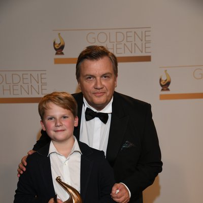 Der jüngste Preisträger des Abends begeisterte die Zuschauer mit seinem Charme: Julius Weckauf überzeugte im „Der Junge muss an die frische Luft“ inzwischen auch international das Kinopublikum. Als Überraschung überreichte Hape Kerkeling dem Elfjährigen die Goldene Henne-Trophäe in der Kategorie „Aufsteiger“.