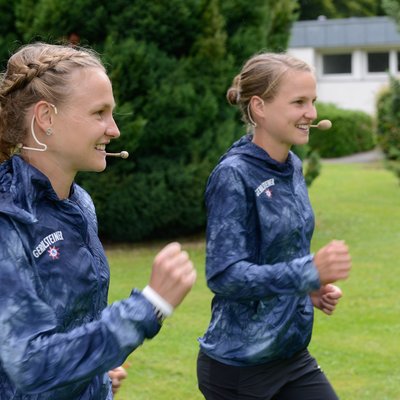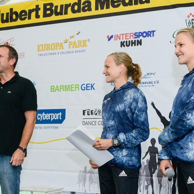 Zu meiner Überraschung bin ich eine der 15 Gewinner, die an diesem Abend einen der riesigen Pokale mit nach Hause nehmen dürfen. Aber mein größtes Highlight ist es, mit zwei zukünftigen Olympioniken auf der Bühne zu stehen. Anna und Lisa Hahner sind die weltweit schnellsten Marathonzwillinge und treten dieses Jahr bei den Olympischen Spielen in Rio für Deutschland an. Wie im Jahr zuvor liefen sie mit und begleiteten die Burda-Mitarbeiter durch den Abend.
