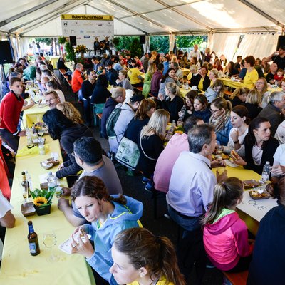 Es ist ein richtiges Familienfest – Kollegen tauschen sich aus, Kinder toben auf der Hüpfburg und wer keine Medaille ergattern konnte, versucht sein Glück bei der Tombola. Für jeden ist etwas geboten. Auch wenn der Muskelkater nach dem Lauf sicher groß sein wird, freue ich mich jetzt schon auf „Burda läuft“ im nächsten Jahr.