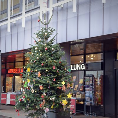So professionell verziert kann sich der Baum jetzt wirklich sehen lassen und versprüht weihnachtliche Vorfreude in der Fußgängerzone.