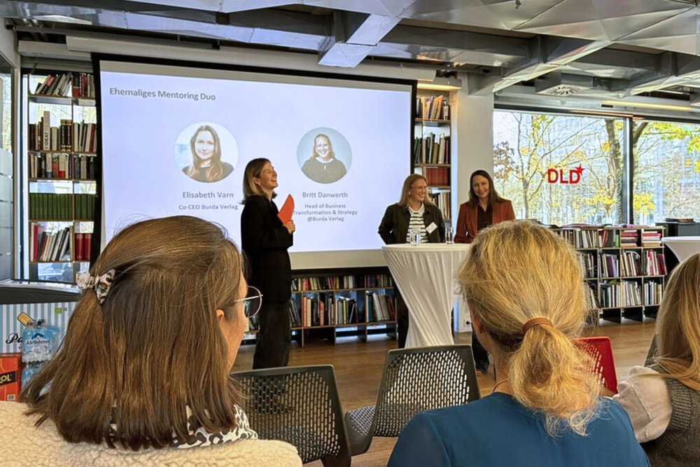 Aktuelle und ehemalige Trainees, darunter Carolin Maser, Analyst Strategie, BurdaEquity, Josephine Lusch, Investment Associate, Burda Principal Investments, Louisa Sahlberg, Trainee, Immediate und Bianca Rehle, Trainee, Valiton, eröffneten die Veranstaltung. Bastian Behrens, CEO von Valiton und seit 14 Jahren bei Burda, inspirierte anschließend mit einer Rede über Mentoring als wechselseitigen Prozess und betonte die Bedeutung von Netzwerken.