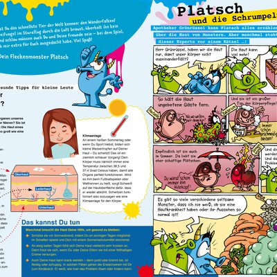 Auf spielerische Weise möchte das Mitmachmagazin Platsch in der Rubrik „Gesunde Tipps für kleine Leute“ bei Mädchen und Jungen Interesse wecken für einen achtsamen Lebensstil sowie für die Bedeutung und Vorbeugung von Krankheiten. Kinderärzte und Apotheker begleiten es inhaltlich. Identifikationsfigur ist das Fleckenmonster „Platsch“. Neben Tierbeiträgen und spannenden Sachthemen, wie z.B. Einblicke hinter die Kulissen von Feuerwehr & Co, enthält die Zeitschrift kinderfreundliche Rezept- und Spielideen sowie Rätsel, Basteltipps, Ausmalbilder und ein großes Tierposter. Ein Gratis-Highlight in jeder Ausgabe ist ein immer neues Hörbuch zum kostenlosen Download.