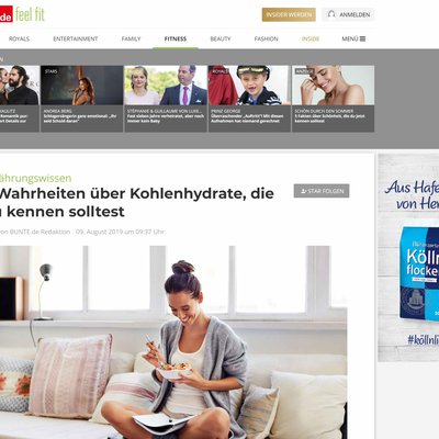 Ob Overnight Oats oder Getreide-Kaffee-Smoothie zum Frühstück, Blumenkohl-Risotto oder Frikadellen zu Mittag, eine „After Work-Bowl“ oder lieber Pizza zum Abendessen: Die entwickelten Rezepte bieten für jeden Geschmack das Richtige. Sie sind einfach nach zu kochen und machen den ganzen Tag über Lust auf Köllnflocken. Diese Rezepte sind die Basis der Content-Kampagne, sie werden passgenau für die Zielgruppe auf unterschiedlichsten Kanälen aufbereitet. Im Zentrum stehen dabei von der Burda Food Agency hochwertig produzierte Videospots. Die 30-Sekünder werden über die sozialen Kanäle von Das Kochrezept gestreut und sind auf dem Portal als native Rezepte platziert. Bunte.de schafft native Themenkanäle („Editorial Branded Hub“) mit eigenen Artikeln. Damit die Inhalte besonders wirksam bei der Zielgruppe ankommen, spielen die Burda-Marken den Content zur passenden Tageszeit aus.