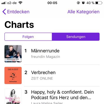 Der Versuch ging voll auf, denn der Podcast kommt nicht nur beim Freundin-Publikum hervorragend an. Vergangene Woche hat der Podcast die Spitze der iTunes-Charts erreicht. Schon die dritte Folge des Podcasts hat es an Tag 1 ihrer Veröffentlichung auf Platz 2 der iTunes-Charts geschafft. Nicht zuletzt dank der zahlreichen unterstützenden Posts der Burda-Marken auf den Social-Media-Kanälen konnte diese hohe Aufmerksamkeit und der rasche Anstieg in die Charts geschaffen werden.