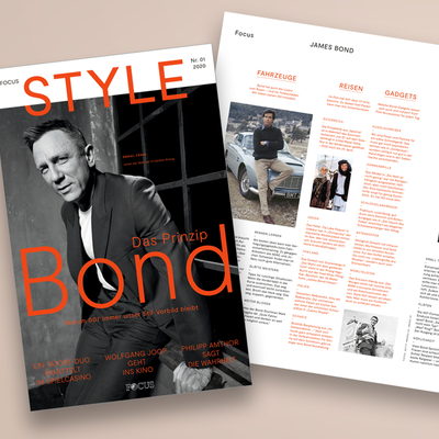 Angelehnt an den geplanten Filmstart von ‚James Bond 007: Keine Zeit zu sterben‘, erscheint morgen, am 14. März, das Supplement Focus Style im Nachrichtenmagazin Focus. Mit starker, großflächiger Bildsprache und Beiträgen über männliche Stil-Ikonen unserer Zeit richtet sich die Beilage an alle modebewussten Männer, die dem Zeitgeist auf der Spur bleiben wollen. Focus Style steht für Haltung, Inhalt, Stil und opulente Optik und ist die Antwort auf Fragen des modernen Mannes.