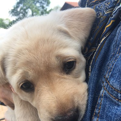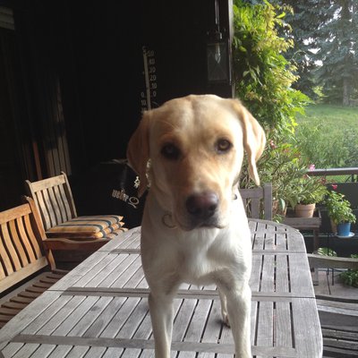 Ich bin die Karlie, inzwischen dreieinhalb Jahre jung und ein blondes Schwarzwald-Mädel. Entdeckt hat mich mein Frauchen bei euch im Intranet. Fürs Foto hatten sie mich mit gerade mal fünf Wochen in einen alten Wanderschuh gesteckt. Was soll ich sagen, meine braunen Augen und meine samtigen Labrador-Ohren haben natürlich sofort ihr Herz höher schlagen lassen. Als wir uns dann in echt begegnet sind, war es restlos um sie geschehen. Obwohl, meine kleine dicke Schwester war auch an ihr dran. Aber entschieden haben sie sich dann doch für mich. Die anderen beiden anderen, die beim Besuch dabei waren, also mein Herrchen und ihr Sohn, waren auch eindeutig für mich.