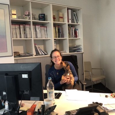 Mein Frauchen heißt Julia Dworatschek und arbeitet als Brand Protection Manager bei Focus Line Extensions. Dort sucht sie Firmen, die für Focus-Siegel keine Lizenzrechte erworben haben. Deswegen sitzt sie den ganzen Tag am Schreibtisch und sucht nach Verstößen. Auch wenn wir draußen unterwegs sind, schaut sie manchmal so seltsam, macht Fotos von Werbungen oder Autos und schickt sich das dann ins Büro. Seltsam.