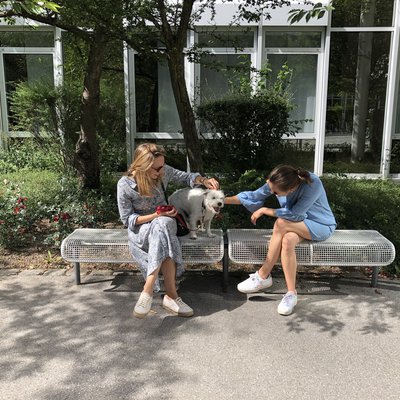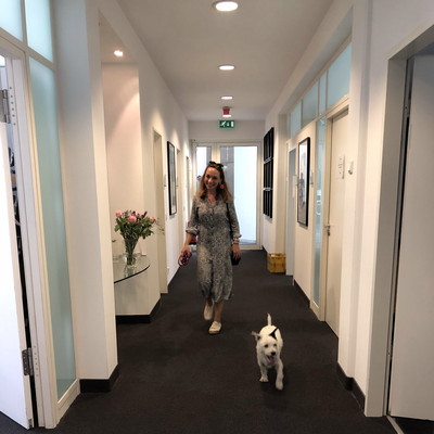 Mein Frauchen heißt Susanne Feilmeier und arbeitet bei der Felix Burda Stiftung. Das ist ein unglaublich nettes Rudel und es herrscht immer gute Stimmung. Die sind auch alle sehr sozial und setzen sich für Darmkrebsprävention ein, was für Menschen - die ja alles mögliche essen - ein super wichtiges und ernstes Thema ist. Frauchen arbeitet dort im Bereich Marketing & Communications, sitzt meistens am Computer und überlegt sich was Spannendes.