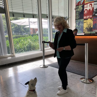 In der Stiftung bin ich die einzige Fellnase, was mir auch ganz gut gefällt. Das ist und bleibt mein Revier. Im Gebäude Arabellastraße 27 entdecke ich aber immer wieder viele Hundekollegen. Also sagen wir mal so: Ich bin offen für Dates.