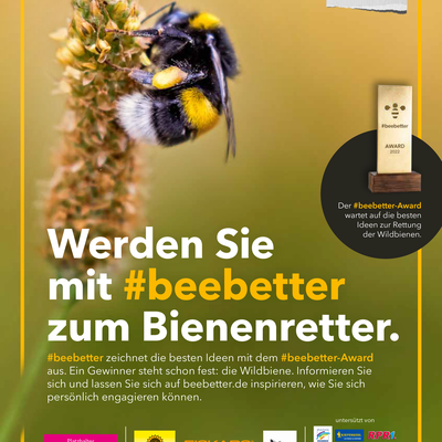 Zum 1. März beginnt die Bewerbungsphase für den diesjährigen #beebetter Award zu Auszeichnung vorbildlicher (Wild)Bienenschutz-Projekte und -Aktionen in ganz Deutschland. Bis zum 10. Juli können sich kleine und große Bienenretter in den vier Kategorien Jugend & Bildung, Private Initiativen, Landwirtschaft und Institutionen bewerben sowie um den Sonderpreis für besonderes Engagement. Weiter Informationen finden Sie hier.
