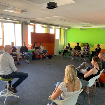 Der Besuch ist Teil des Austauschs zwischen BurdaForward und der BJS und ganz im Sinne der Werte von „mxreBurda". Forward-Volos können nach Bedarf einzelne Seminare an der BJS belegen. Und auch umgekehrt wird die Vernetzung gelebt: Im August und September konnten bereits vier BJS-Volontär:innen des Jahrgangs 2021 Münchner Luft in den Job-Teams (nach Jobs to Be Done) der BurdaForward schnuppern, die die redaktionellen Inhalte für die Marken Focus Online und Bunte.de erstellen. Währenddessen hospitierten vier Forward-Volos bei Elle, Instyle und dem Focus Magazin.
